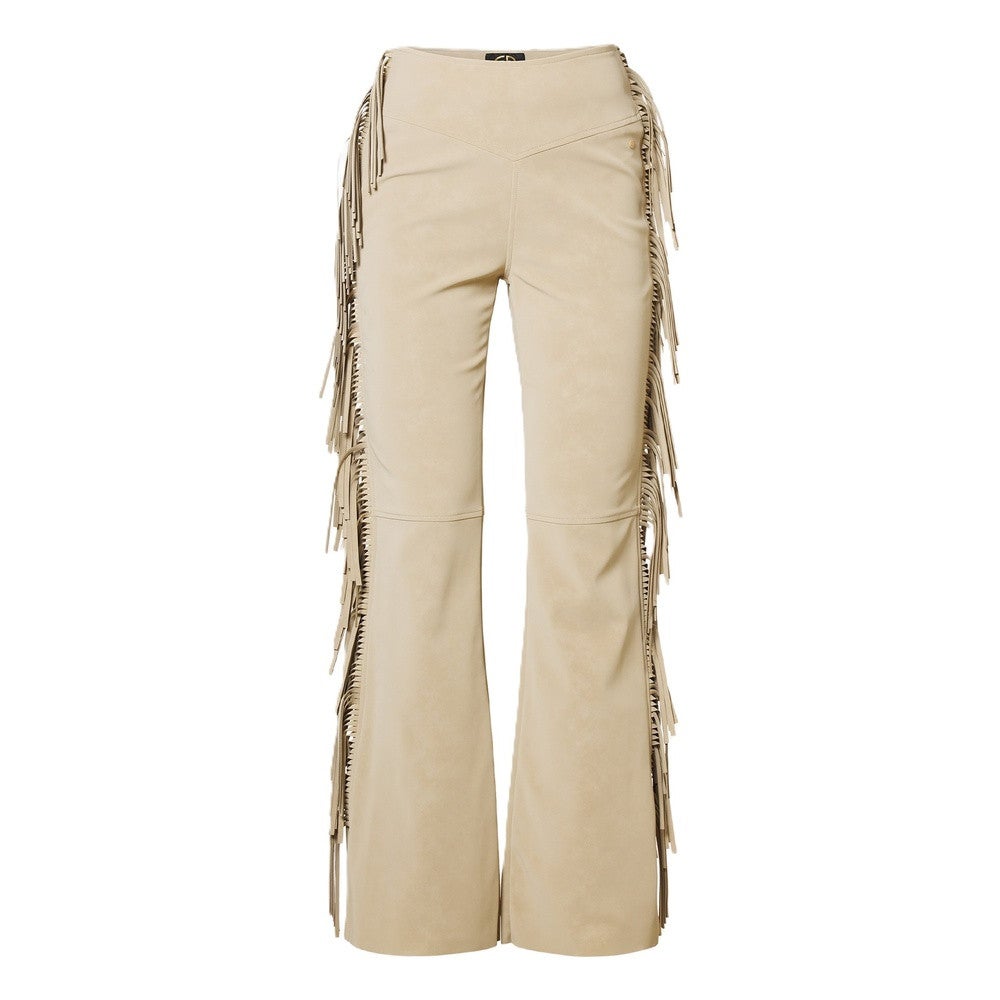 De Goldbergh Lina pants in Caramello is een echte eyecatcher voor wie houdt van een modieuze twist in haar garderobe. Deze slank gesneden broek heeft elegante franjes langs de zijkanten die bij elke stap sierlijk meebewegen. Het speelse detail geeft de broek een luxe en tegelijkertijd nonchalante uitstraling – ideaal om je outfit nét dat beetje extra te geven.