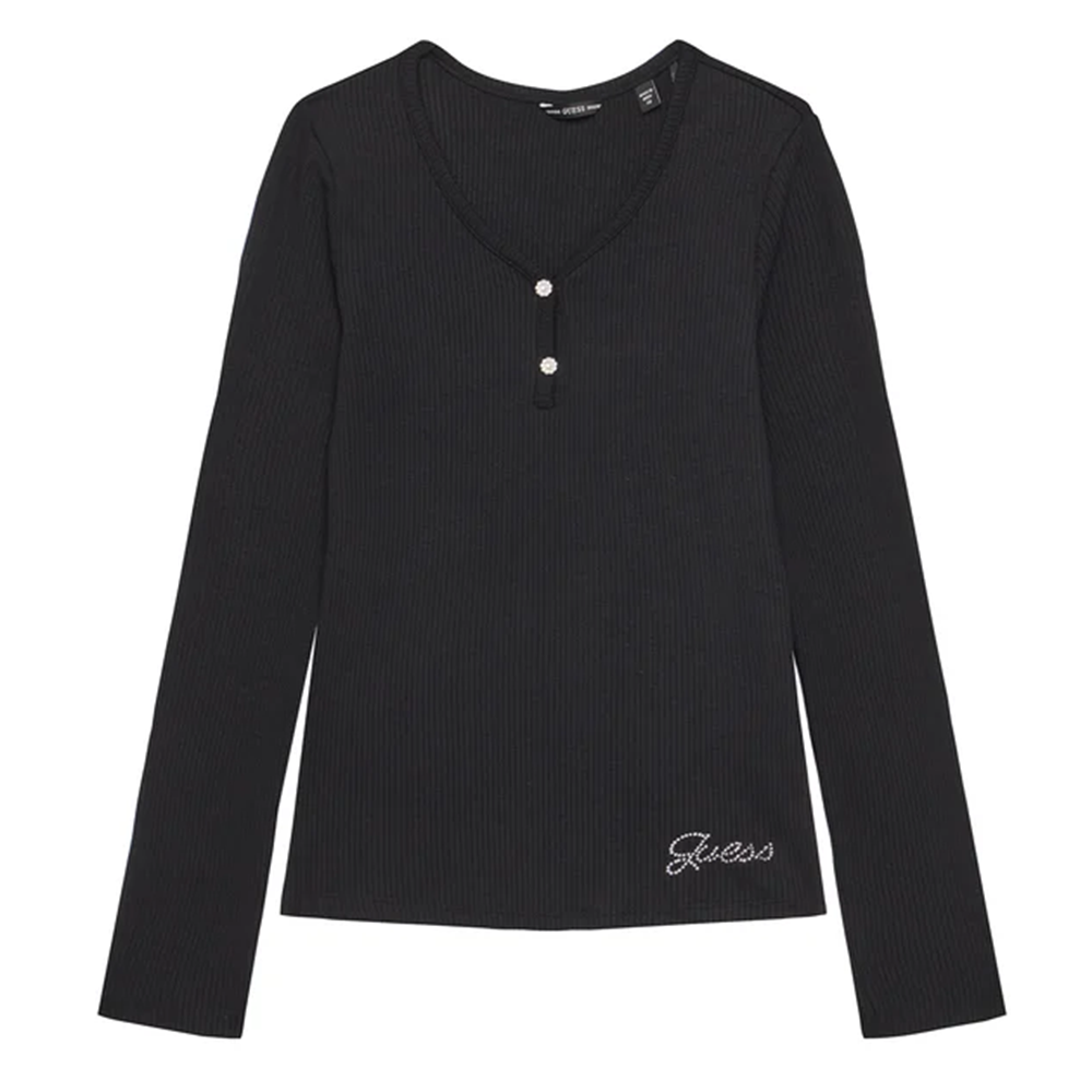 GUESS KIDSVISCOSE RIB LS T-SHIRT_MINIME BUTTONS Zwart 1