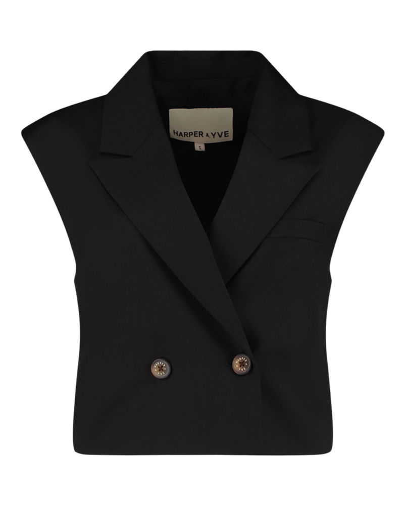 De Esmee Gilet van Harper & Yve in zwart is een stijlvolle top die moeiteloos je outfit naar een hoger niveau tilt. Het mouwloze model en de subtiele knoopsluiting maken het perfect om als extra touch over een top te dragen en geeft je meteen een fashion‑forward look. Het materiaal voelt lekker zacht en comfortabel aan, waardoor je hem de hele dag makkelijk draagt.