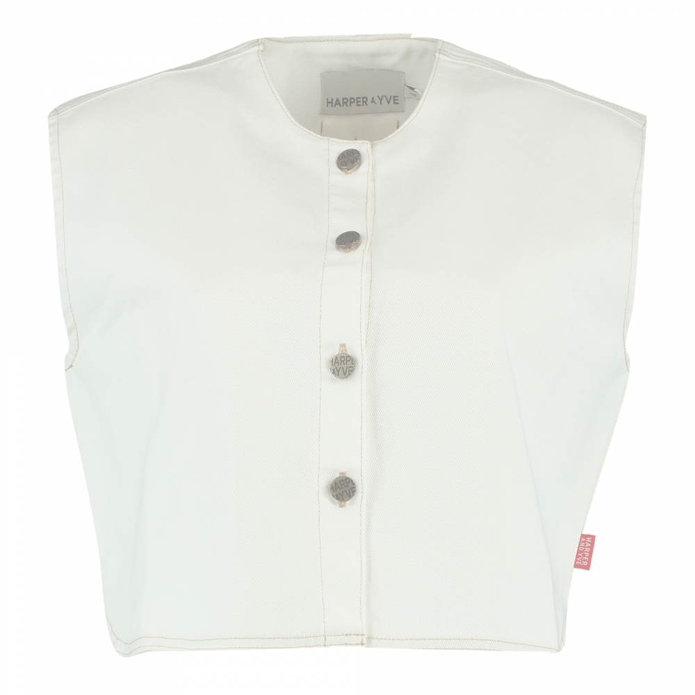 Voeg een stijlvolle laag toe aan je outfit met de Harper & Yve Gilet Gilly HS25R201 in ecru. Dit mouwloze gilet is vervaardigd uit 100% katoen, wat zorgt voor een ademende en comfortabele pasvorm. De ecru kleur maakt het veelzijdig en gemakkelijk te combineren met zowel neutrale als kleurrijke items. De opvallende knopen met het Harper & Yve-logo geven een stoere twist aan het minimalistische ontwerp, terwijl de rechte pasvorm en stevige stof zorgen voor een flatterende, moderne look. Draag het open over een T-shirt voor een casual uitstraling of sluit het volledig voor een strakke, edgy stijl. Dit gilet is de perfecte keuze voor een eigentijdse, gelaagde look. Het model is 174cm en draagt een 36.