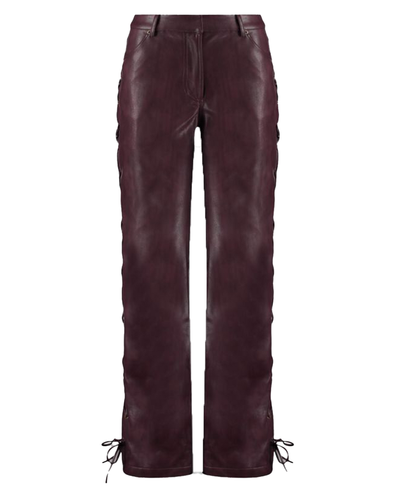 Of je nu kiest voor een casual look met sneakers of een chiquere uitstraling met hakken, deze broek past zich moeiteloos aan jouw stijl aan. De veters aan de zijkant bieden niet alleen een visueel accent, maar zorgen ook voor een subtiele verstelbaarheid, zodat je de pasvorm naar wens kunt aanpassen.