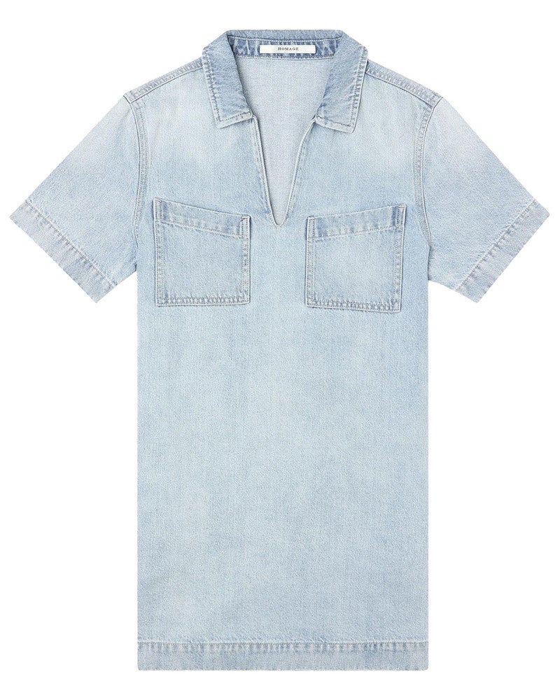 Homage to DenimDenim Shirt Dress With V Neck Blauw