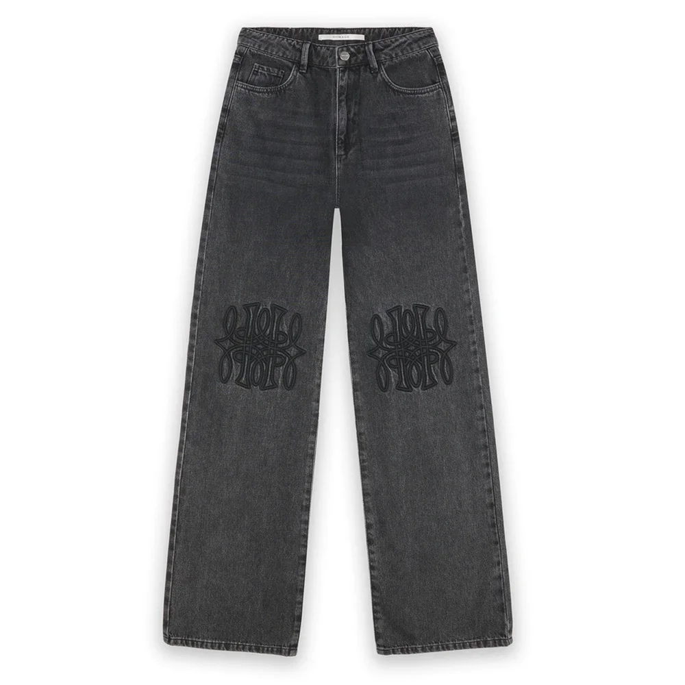 Homage to DenimStraight Leg Jeans With Knee Detail Zwart 1