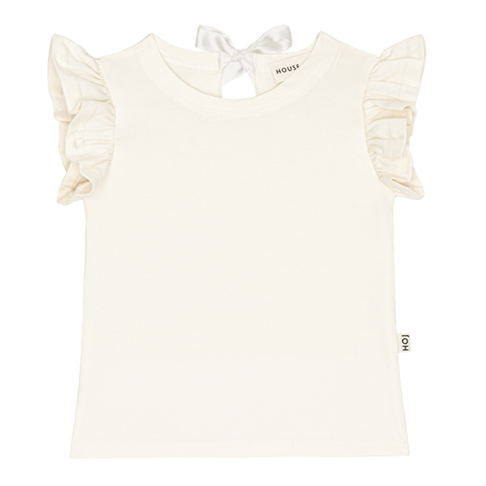 Dit favoriete t-shirt is dit seizoen in 4 verschillende opties verkrijgbaar. Extra girly door de ruffles en sluiting met satijnen lintjes aan de achterkant.