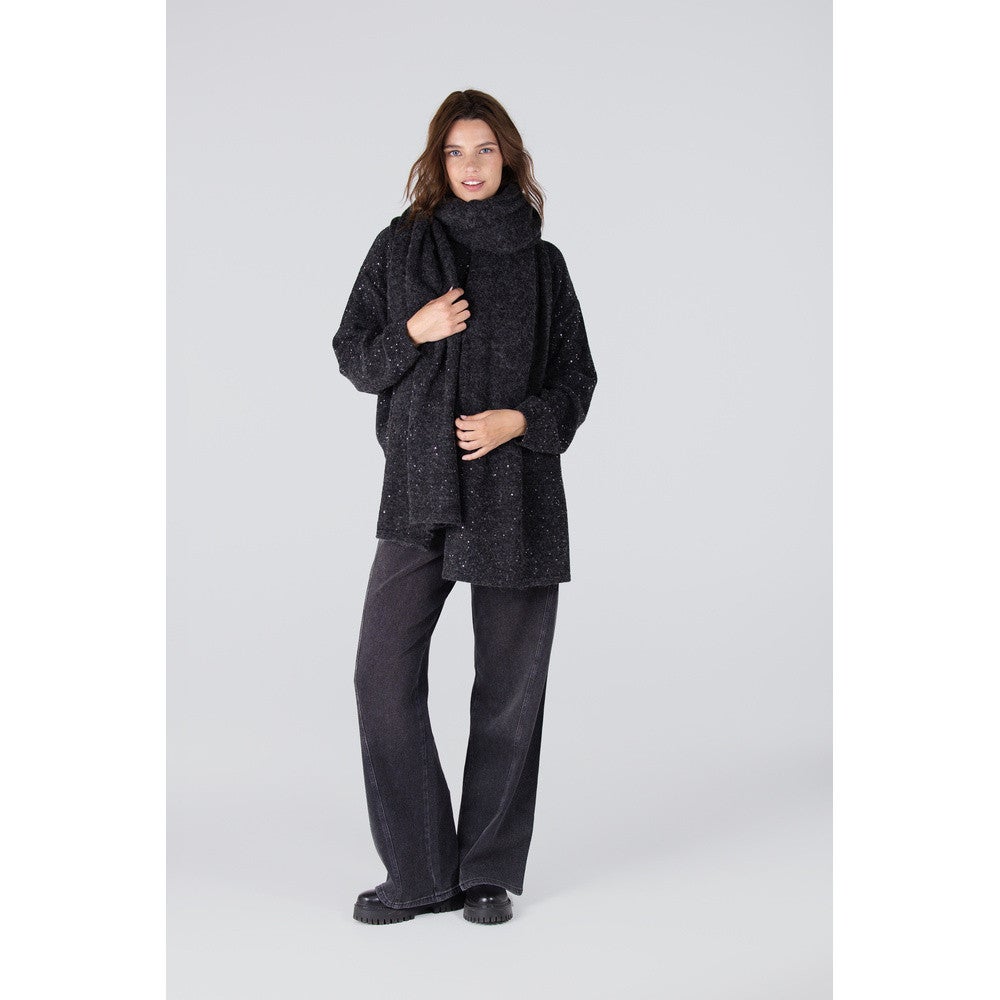 De Anouk trui in antraciet combineert comfort met een vleugje glamour. De subtiele pailletten geven deze knit een verfijnde glans, waardoor hij direct iets bijzonders toevoegt aan je look. Perfect voor momenten waarop je net dat beetje extra wilt uitstralen, zonder in te leveren op draaggemak.
