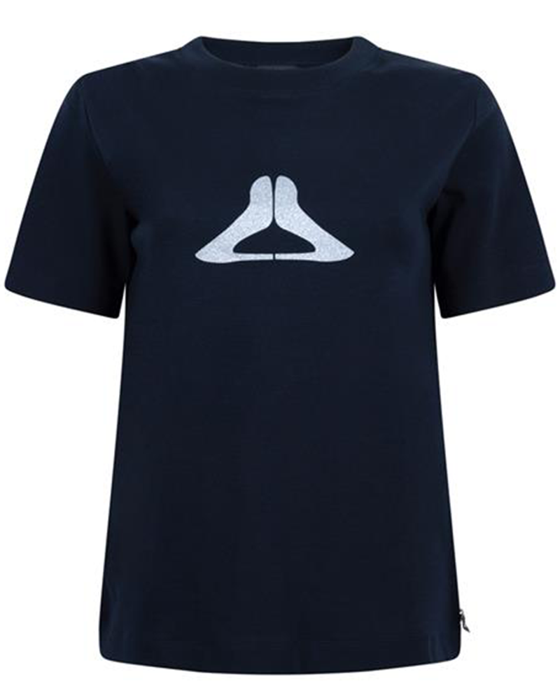 Het Lola t-shirt in donkerblauw is een veelzijdige basic die moeiteloos stijl en comfort combineert. Gemaakt van zware katoen jersey, biedt dit t-shirt een luxe gevoel en een uitstekende pasvorm. De subtiele ribboord langs de halslijn zorgt voor een nette afwerking, terwijl het zilverkleurige logo op het voorpand een verfijnd accent toevoegt.