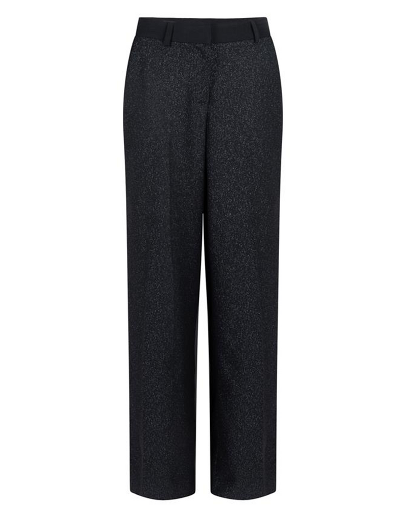 De Lucia pantalon in zwart met zilveren lurex sparkle van Jansen Amsterdam is een statement piece dat stijl en comfort moeiteloos combineert. De wijde pijpen geven de broek een elegante, vloeiende uitstraling die zowel chique als eigentijds oogt. Het subtiele lurex sparkle voegt een verfijnde glans toe, waardoor de broek perfect is voor zowel formele als feestelijke gelegenheden.
