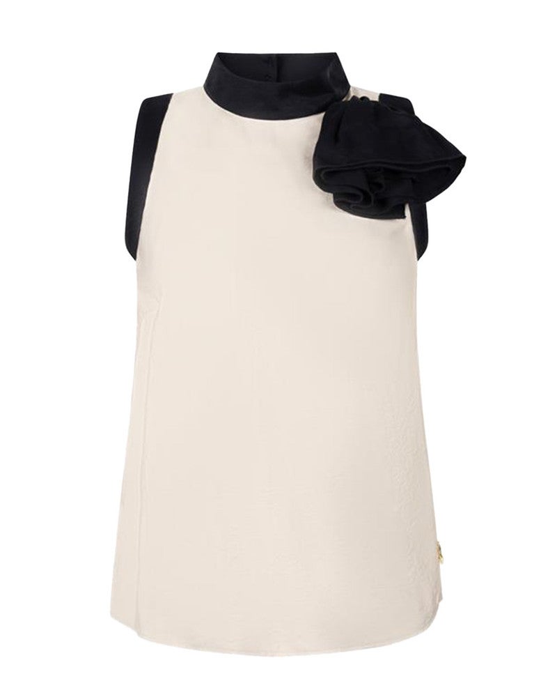 Jansen AmsterdamPAISLEY TOP CB 308 color block sleeveless flower detail Beige