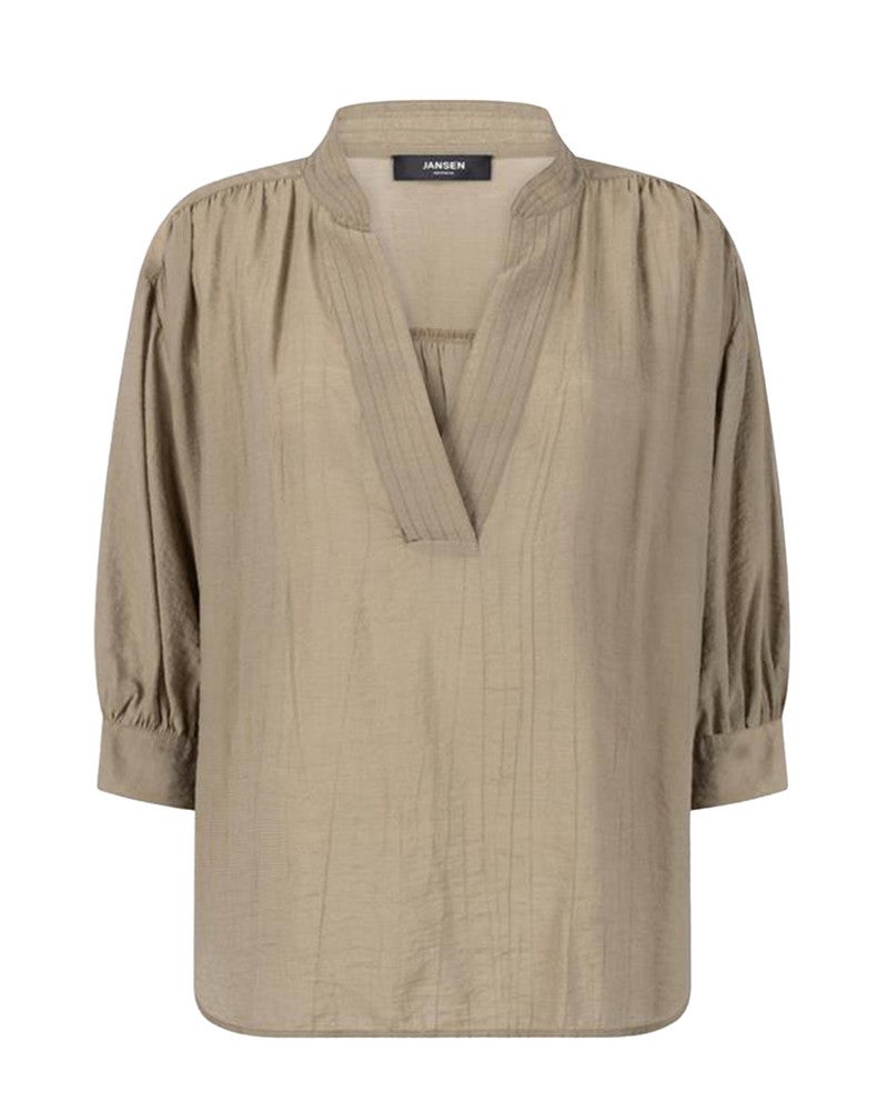 Jansen AmsterdamPEM BLOUSE C 770 transparant 3/4 sleeve v-neck wide Groen