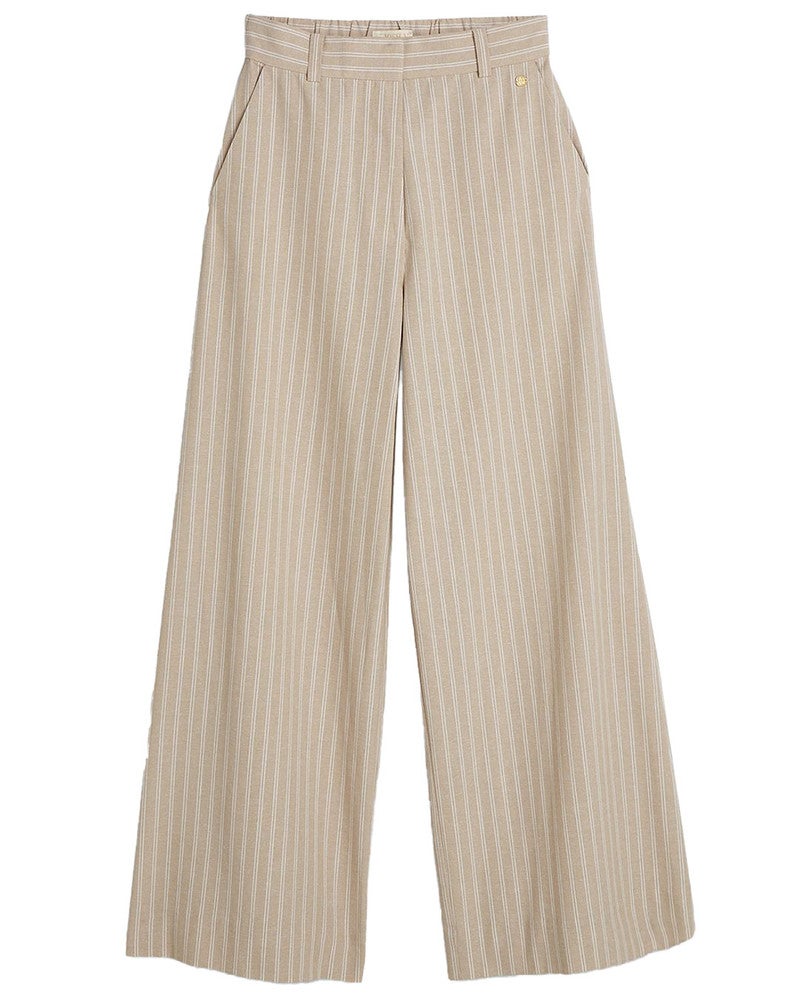 De JOSH V Odessa pantalon in Stone Stripe is een stijlvolle mid rise wide leg broek met een tijdloos verticaal streeppatroon. Deze JOSH V pantalon heeft een moderne en elegante uitstraling, waardoor hij perfect is voor het samenstellen van zowel casual als meer geklede outfits. De wide leg pasvorm zorgt voor een luchtig en flatterend silhouet, terwijl de elastische tailleband extra draagcomfort biedt en mooi aansluit in de taille. Dankzij het subtiele streeppatroon krijgt de broek een klassieke, maar toch eigentijdse look die eenvoudig te combineren is met verschillende tops en blouses. Voor een complete en modieuze outfit kun je de Odessa pantalon combineren met de JOSH V Inez top, waarmee je een elegante co-ord set creëert die perfect is voor de zomer. Samen vormen ze een harmonieuze combinatie die zowel stijlvol als veelzijdig is. Deze JOSH V set is ideaal voor diverse gelegenheden, van een lunch tot een dagje uit of een zomerse gelegenheid. Combineer met sandalen of hakken om je look af te maken en een extra verfijnde uitstraling te geven.