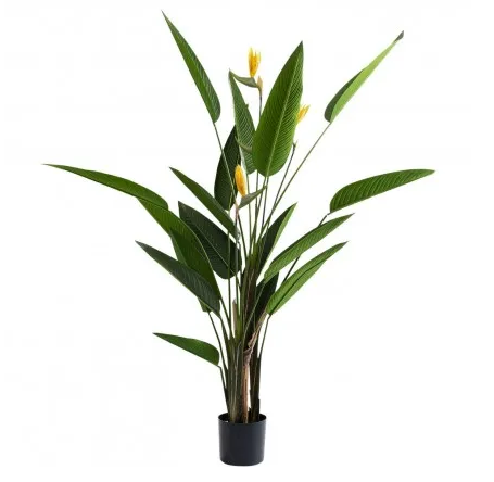 Liefhebbers van de jungle, kunnen de paradijsvogel kunstplant niet missen. Met zijn grote bladeren en eeuwig gele bloemen voert hij u mee naar een tropische sfeer.