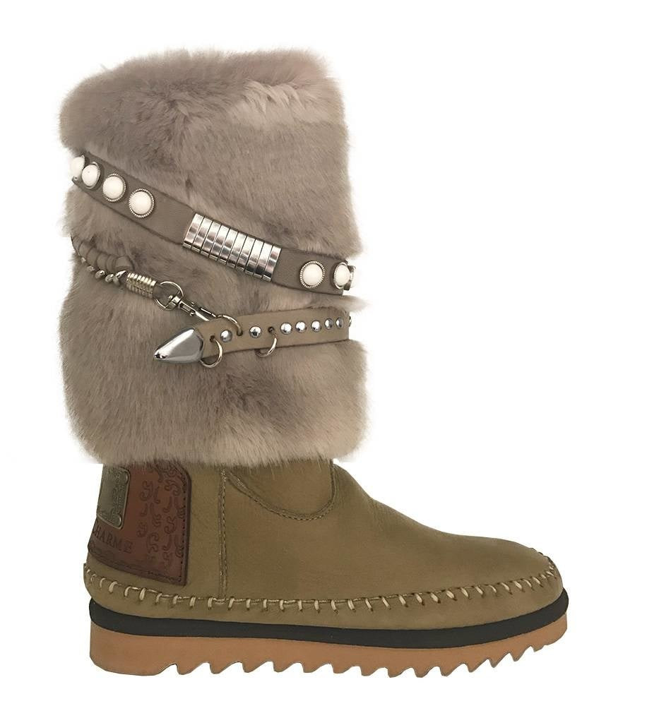 Elegante en warme medio-laarzen, Ecologische bontmanchet is verrijkt met de exclusieve Queen-ketting met zilveren details, Warme binnenvoering van wol, Flexibele en lichte Live Sole van 2 cm,