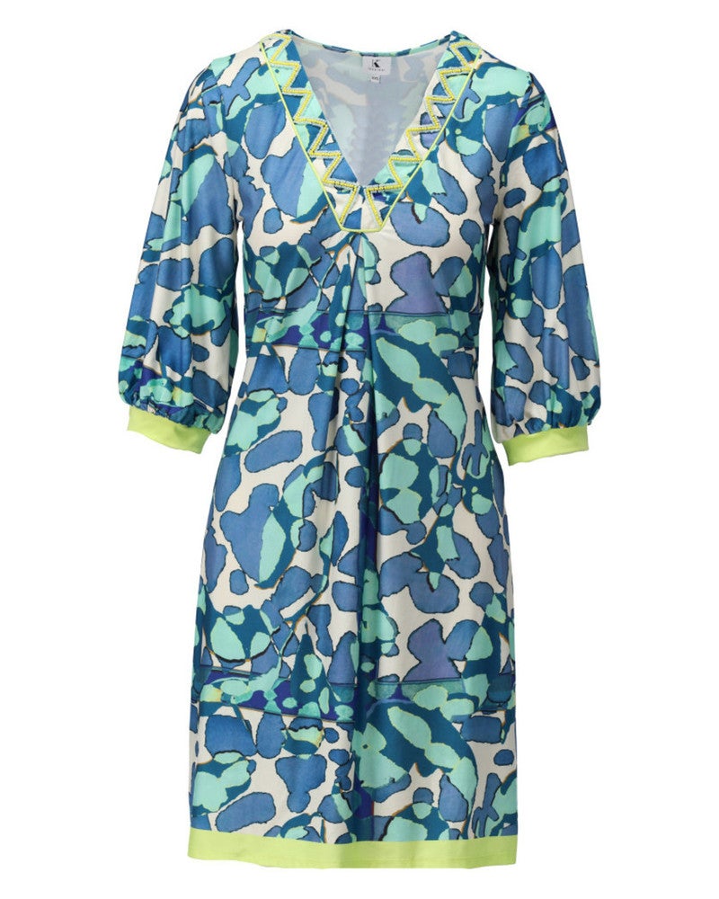 K-DesignC107 V hals jurk met design Blauw