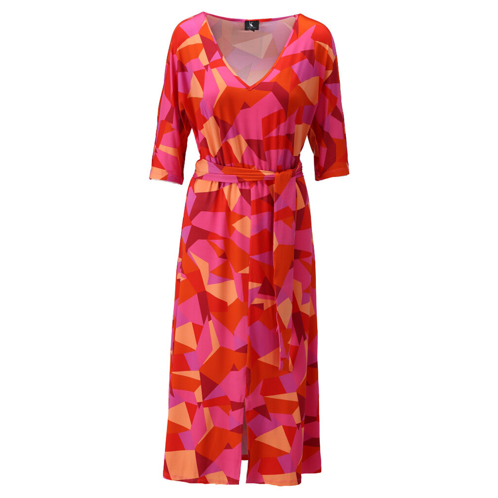 K-DesignMidi Jurk met V-Hals, Split & Design Rood KL