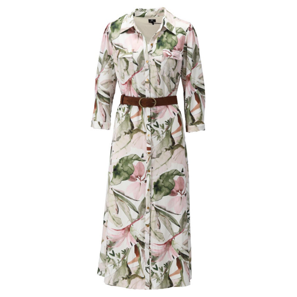 K-DesignPolo Maxi Jurk Met Bloemen Design en Riem Multi KL