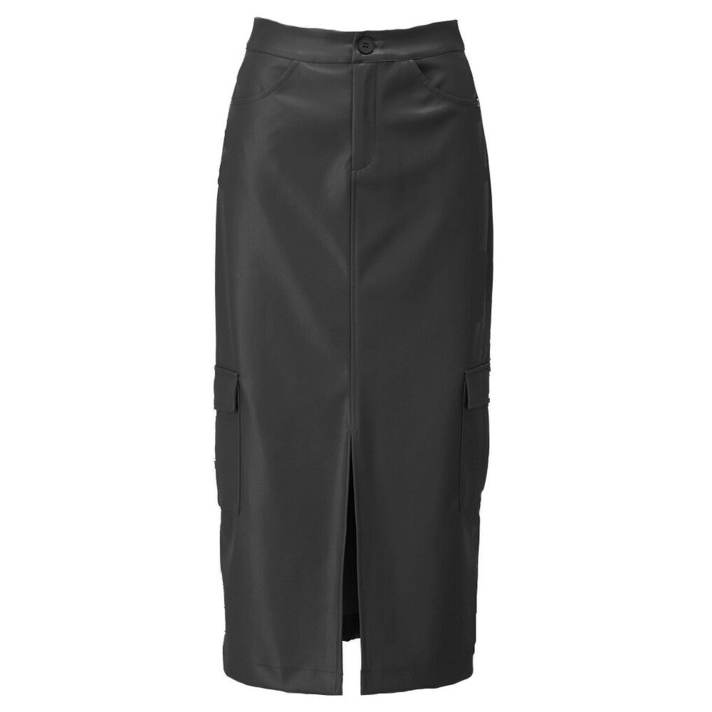 K-DesignVegan Lederen Cargo Rok Zwart 1