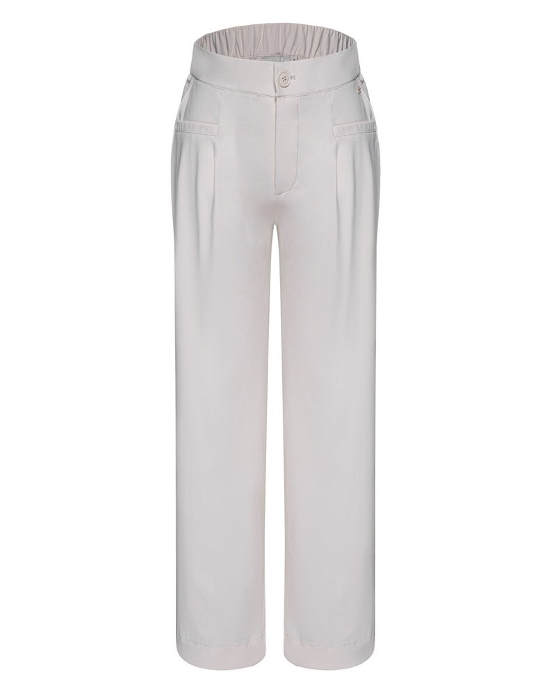 Deze prachtige high waisted pantalon van Kimara combineert een sportief-chique uitstraling met ultiem draagcomfort. Deze pantalon heeft plooien, waardoor deze broek stijlvol en elegant is. Stylingtip: voor een complete en modieuze set is deze pantalon uitstekend te combineren met de bijpassende Kimara Pearl Bomber 2.