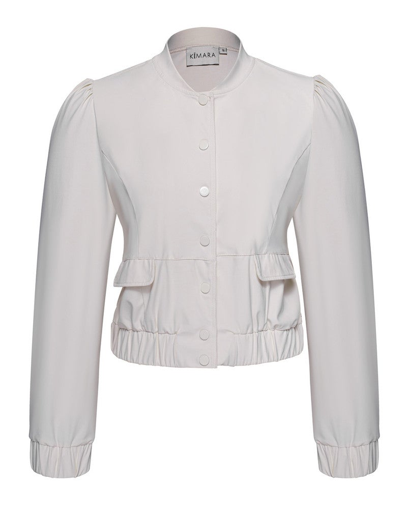 Dit stijlvolle jack van Kimara is de perfecte mix van een klassieke blazer en een sportieve bomber. Het kledingstuk valt op door de verfijnde details, zoals de subtiele pofmouwen die zorgen voor een vrouwelijk silhouet en de elastische boorden die het geheel een moderne twist geven. De blinde drukknoopsluiting en de nette kraagloze halslijn creëren een strakke, minimalistische look die moeiteloos past binnen elke garderobe. Deze Pearl Bomber 2 is voorzien van twee decoratieve klepzakken aan de voorzijde, wat bijdraagt aan de gestructureerde uitstraling. Dankzij de soepele stof en de elastische tailleband aan de achterzijde biedt dit item niet alleen stijl, maar ook een optimaal draagcomfort. Het is een veelzijdig kledingstuk dat zich uitstekend leent voor zowel een zakelijke afspraak als een casual middag uit. Dit item is bijzonder leuk te combineren met de Kimara Ivy Pants of de Kimara Renata Pants. Door het jack te dragen op een van deze bijpassende pantalons creëer je een gestroomlijnde, monochrome look die zowel krachtig als elegant oogt.