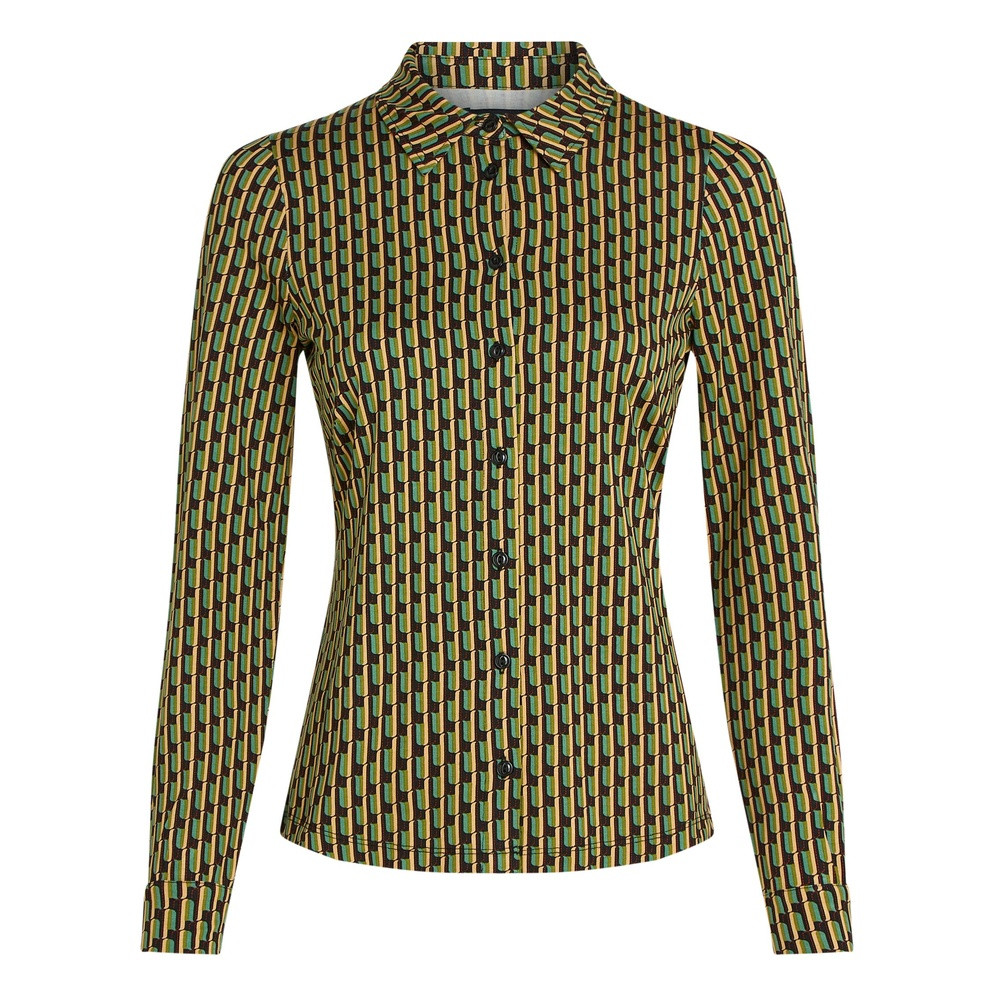 Breng kleur en energie in je outfit met de Gauzy Blouse in Black van King Louie. Deze blouse is gemaakt van een zachte, rekbare viscose jersey die soepel om je lichaam valt en de hele dag comfortabel zit. De levendige grafische print geeft een speelse twist, terwijl de klassieke kraag en knoopsluiting zorgen voor een tijdloze uitstraling.