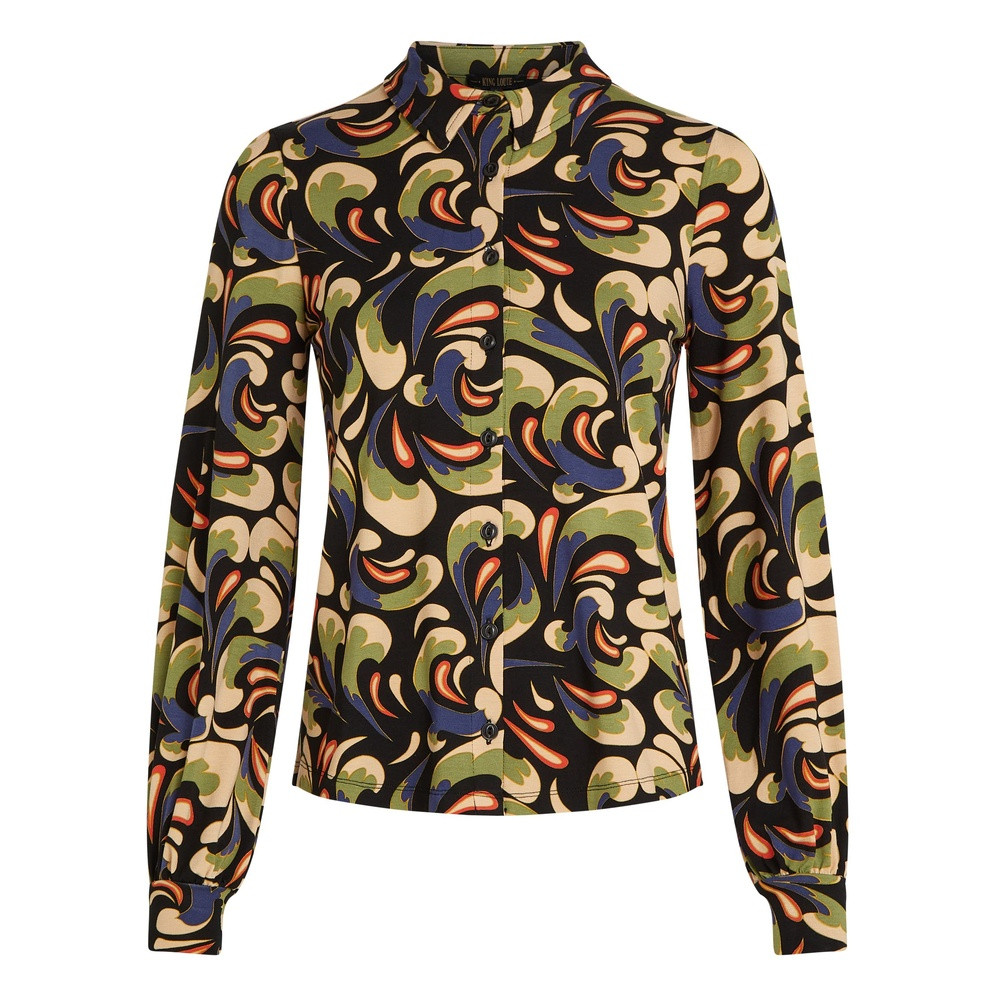 De lange mouwen en klassieke kraag zorgen voor een tijdloze uitstraling, terwijl de kleurrijke print je outfit direct karakter geeft. Dankzij de knoopsluiting is de blouse gemakkelijk te dragen, zowel netjes dichtgeknoopt als losjes over een top. Draag haar op een jeans voor een casual look, of combineer met een rok of pantalon voor een meer geklede stijl.