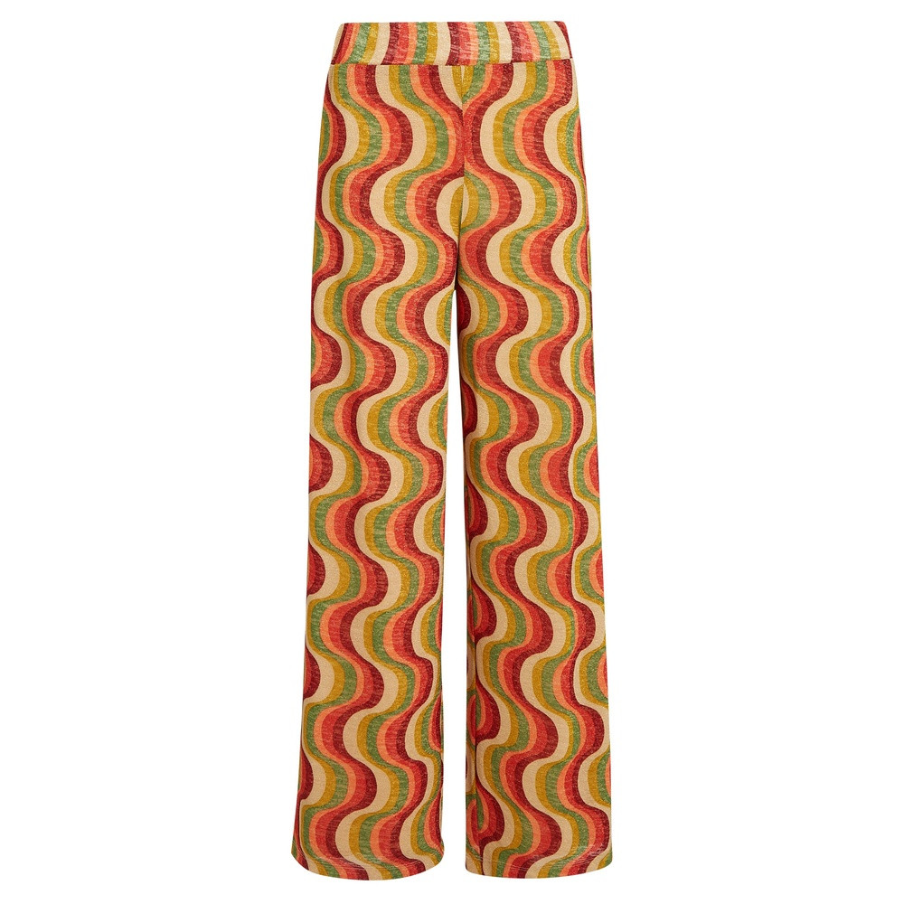Voeg een vleugje retro flair toe aan je garderobe met de King Louie Sara Broek Jiggy in Ribbon Rood. Deze opvallende damesbroek combineert vintage charme met modern comfort. Het speelse lintpatroon in levendig rood maakt deze broek tot een echte eyecatcher. De hoge taille en wijde pijpen zorgen voor een flatterend silhouet, terwijl de elastische tailleband en soepele stof een comfortabele pasvorm bieden. Gemaakt van duurzame materialen, past deze broek perfect bij een milieubewuste levensstijl. Combineer met een eenvoudige top of de bijpassende Lizzy Top voor een complete look. Ideaal voor zowel casual als geklede gelegenheden, deze broek is een must-have voor elke modebewuste vrouw. Het model is 1,77 m en draagt maat 36.