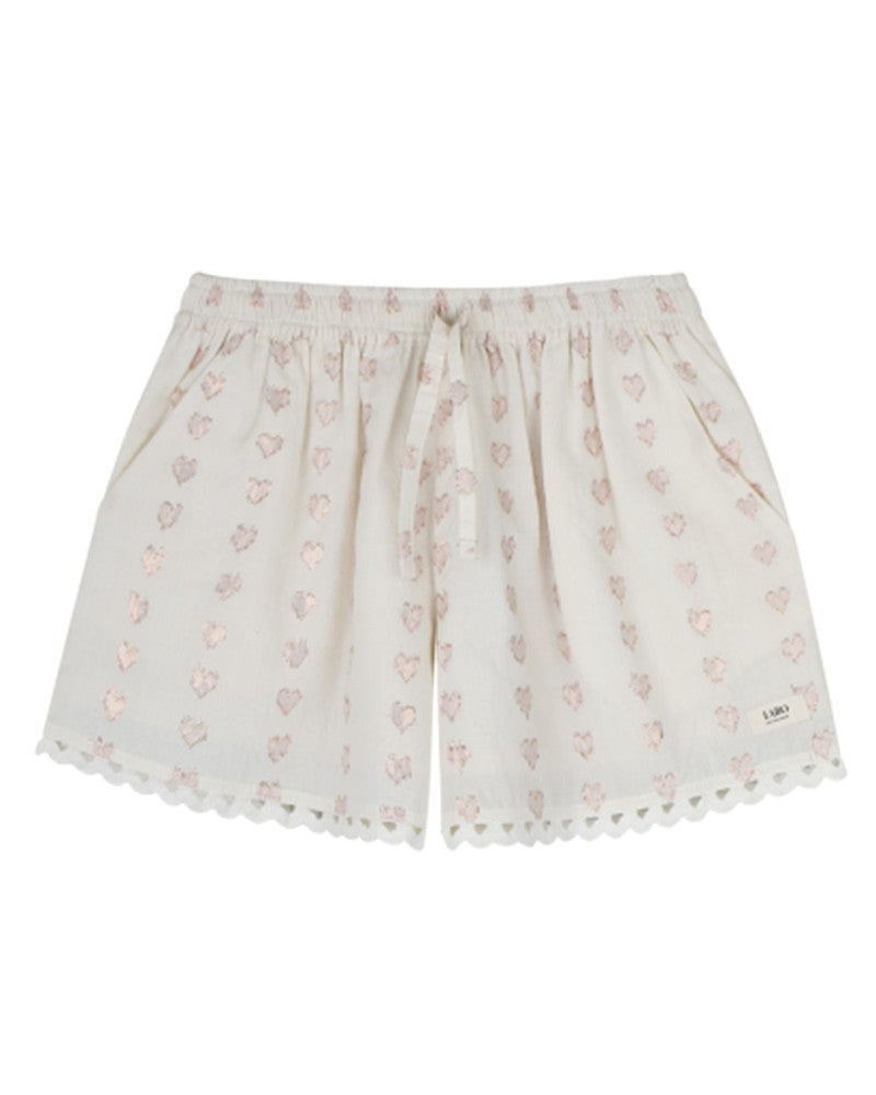De Labo de Colores Liven Golden Hearts short is een speels en stijlvol item voor meisjes, perfect om mee te stralen tijdens warme dagen. De hartjesprint geeft het short een vrolijke, zomerse uitstraling die makkelijk te combineren is met allerlei tops. Of je nu kiest voor een casual T‑shirt of een schattige blouse, met deze Z8 short heb je in een handomdraai een leuke zomeroutfit bij elkaar. Door de frisse look en het leuke printje wordt dit shortje snel een favoriet in de zomergarderobe. Combineer de Labo de Colores short met een leuke top voor een complete en trendy meisjeslook die zowel comfy als fashionable is.