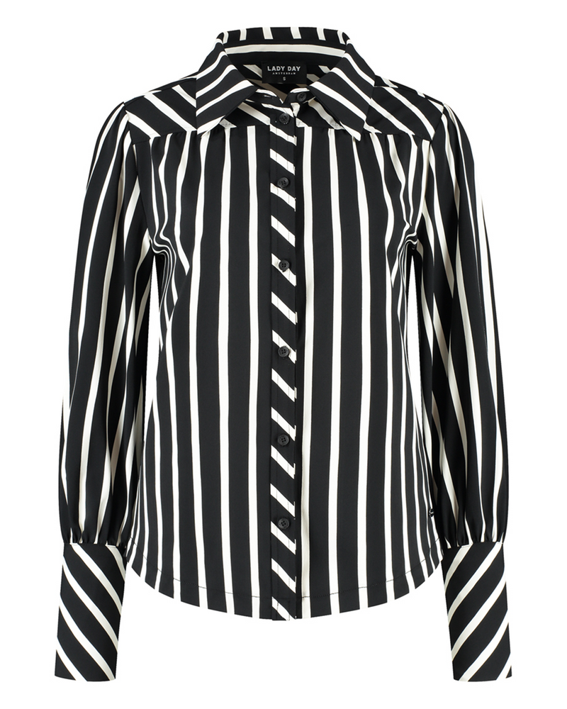 Het ontwerp is klassiek met een normale kraag en een doorlopende knoopsluiting, waardoor hij eenvoudig te combineren is met verschillende outfits. De iets wijdere mouwen geven de blouse een vrouwelijke uitstraling, terwijl de extra lange manchetten een subtiel, stijlvol detail toevoegen.