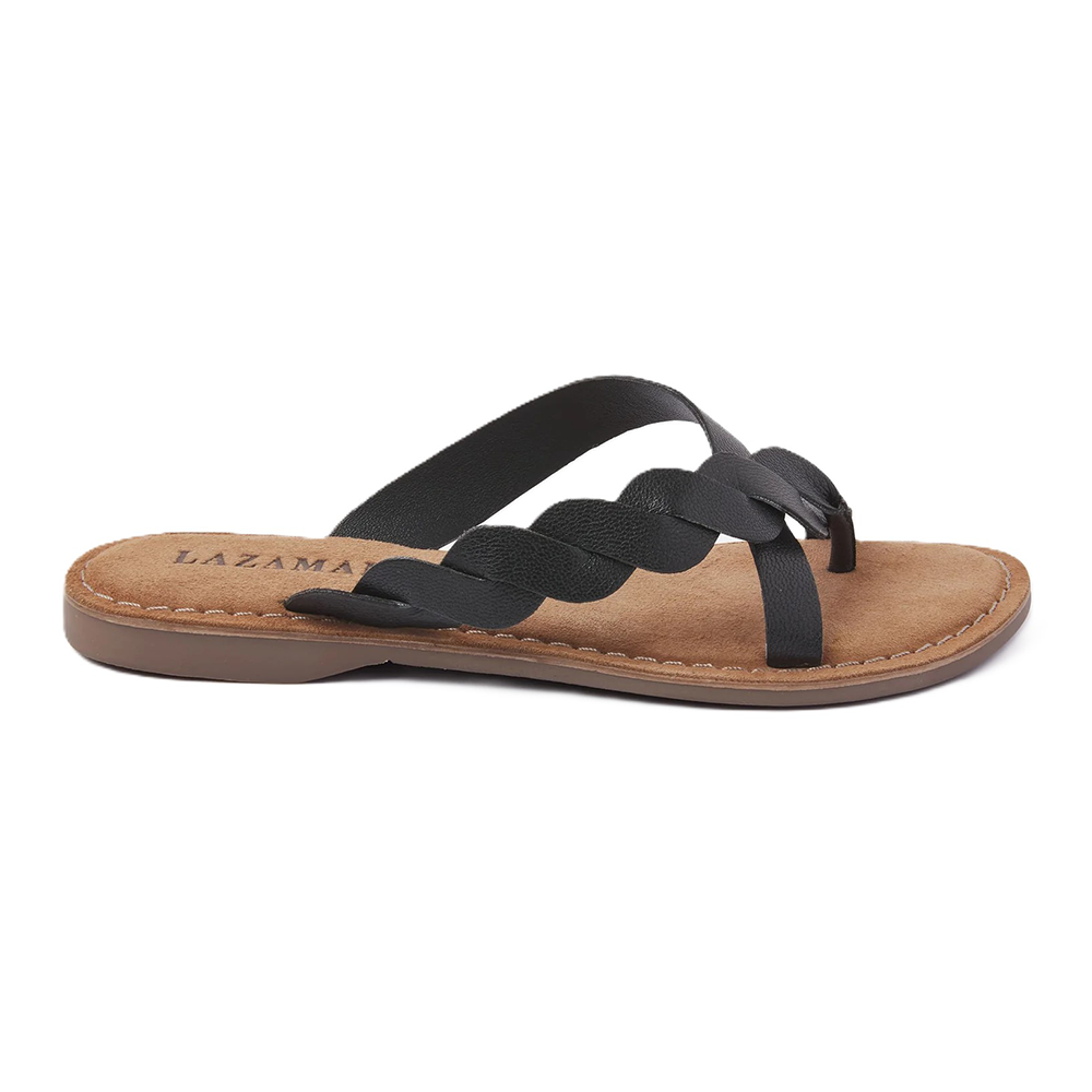 LazamaniLadies Toe Slippers Woven Zwart 1