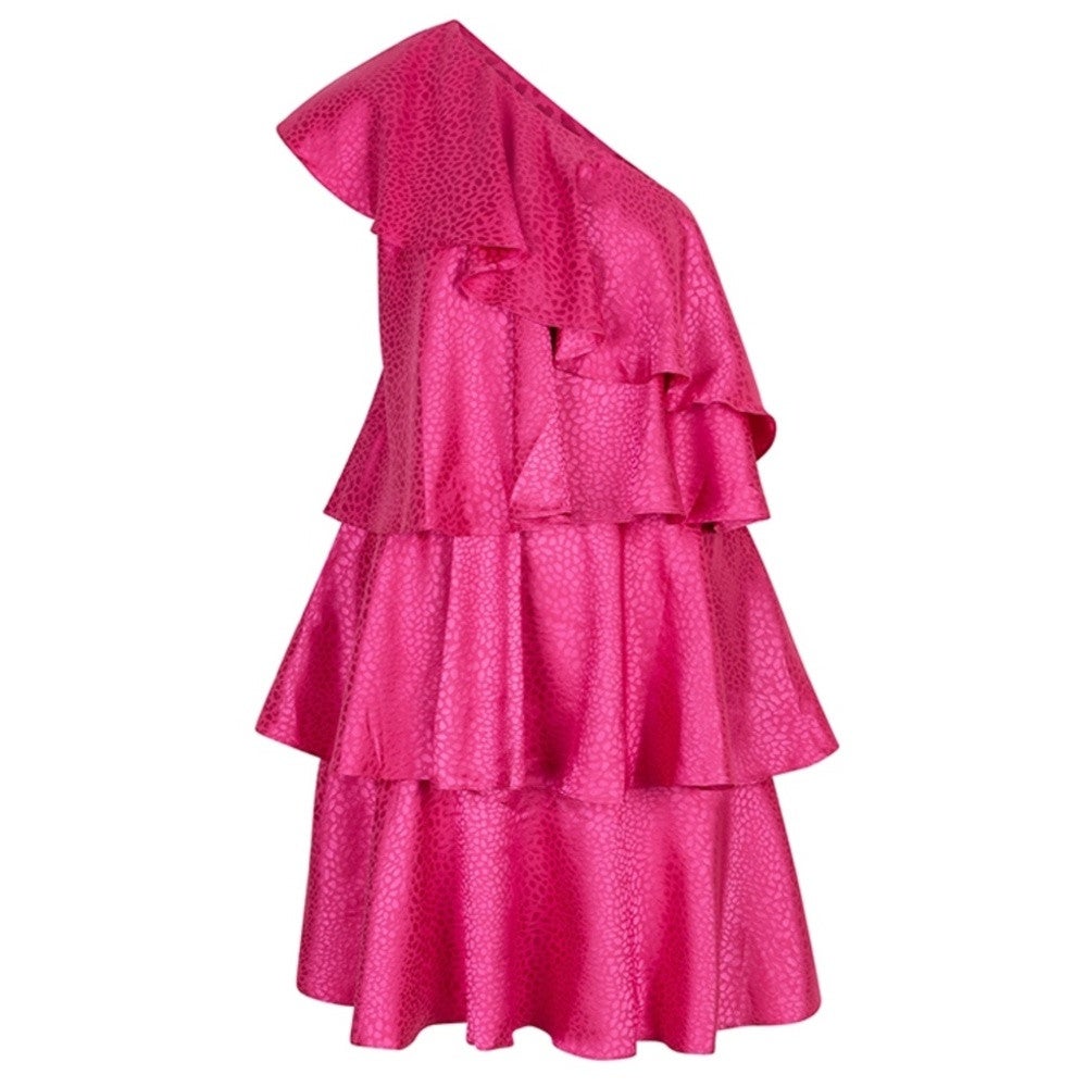 Jurk Skye Pink van Lofty Manner is een echte statement piece. Deze roze mini-jurk met luipaardpatroon is perfect voor wie op zoek is naar een opvallende en vrouwelijke look. Het one shoulder model geeft de jurk een speelse en elegante twist, terwijl de aangesloten pasvorm je figuur prachtig accentueert. Dankzij het gesmokte detail in de taille en de blinde rits aan de zijkant sluit de jurk mooi aan op het lichaam. De luchtige stof en het zomerse design maken Jurk Skye ideaal voor feestjes, vakanties of een avond uit. Met deze roze one shoulder jurk met luipaardprint steel jij gegarandeerd de show! Het model is 178cm en draagt een 36.