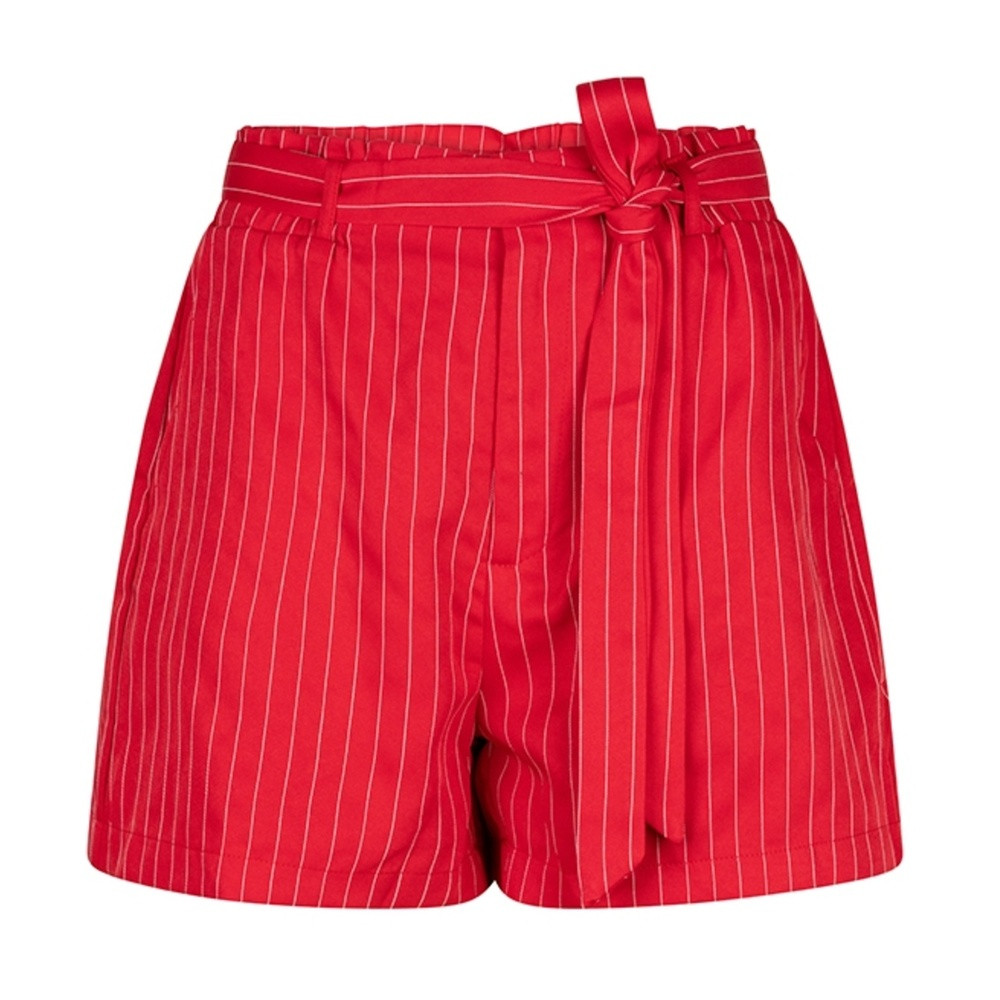 De Short Giovanna rood van Lofty Manner is een echte eyecatcher voor de warmere dagen. Deze stijlvolle short in een krachtige rode kleur geeft je outfit meteen een modieuze en zomerse uitstraling. Dankzij de hoge taille met strikceintuur en elastische band aan de achterkant zit de short niet alleen comfortabel, maar zorgt hij ook voor een vrouwelijk silhouet. De siernaden en het elegante design maken dit item perfect voor zowel casual als meer geklede gelegenheden. Combineer met een witte blouse of een bijpassende top voor een complete look. Ideaal voor een dagje stad, vakantie of een zomerse borrel in stijl. Het model is 1.78m en draagt maat 36. De maat valt normaal.
