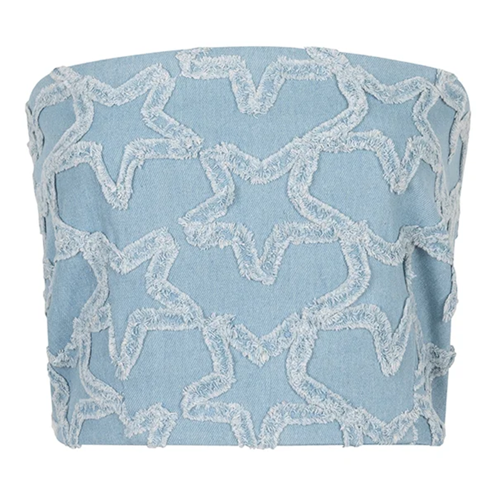 Deze denimblauwe top is een echte blikvanger. Het strapless model geeft een speelse, zomerse uitstraling, ideaal voor warme dagen en feestelijke gelegenheden. Dankzij de elastische achterkant blijft de top stevig op zijn plek. Je hoeft dus niet constant te trekken of te corrigeren: je kunt gewoon dansen, bewegen en genieten.
