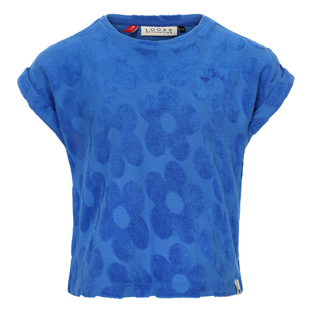 LOOXS LittleLittle Flower Jaquard Terry Top Donker Blauw