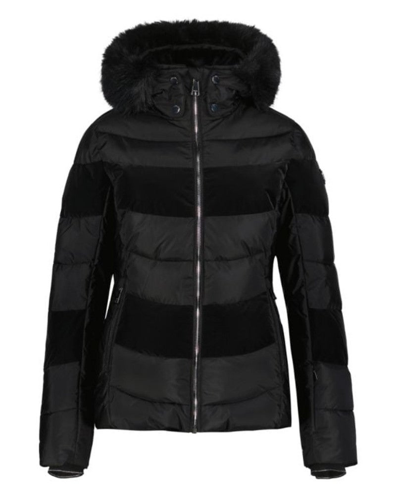 Doordat een deel van het materiaal bestaat uit gerecycled polyester, voelt deze jas niet alleen luxe aan, maar is hij ook een bewuste keuze. Perfect voor actieve vrouwen die graag stijlvol voor de dag komen en zonder zorgen willen genieten van elke piste, van vroege ochtendruns tot lange middagen in de bergen.