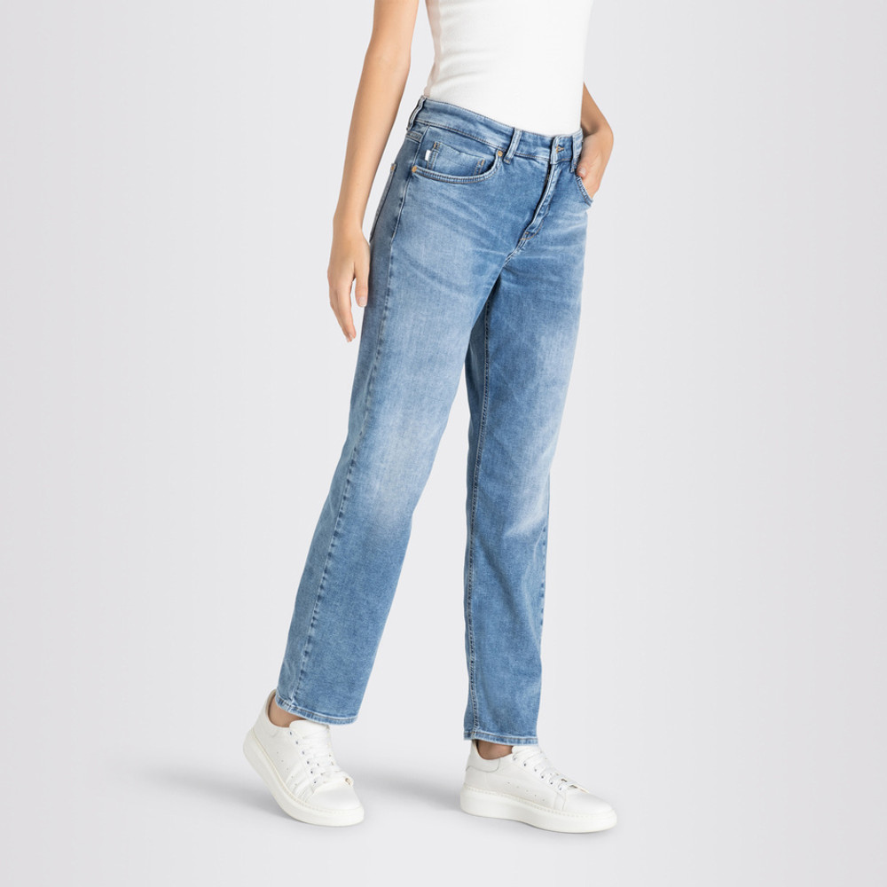 De STRAIGHT fit broek van Mac heeft wijde pijpen en is voorzien van een normale taillehoogte. De broek is gemaakt van lichtgewicht materialen en heeft een huidvriendelijke en ademende kwaliteit. Het 5-pocketmodel heeft een hoog draagcomfort en heeft een mooie wassing.