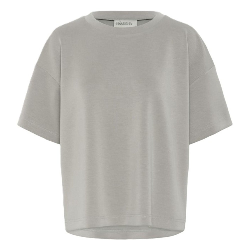 Het HelleMW T-shirt in de kleur Moon Mist van My Essential Wardrobe is een veelzijdige dames top die moeiteloos stijl en comfort combineert. Met zijn ontspannen pasvorm, ronde hals en verlaagde schouders biedt dit T-shirt een moderne en relaxte uitstraling. De korte mouwen en het losse silhouet maken het ideaal voor zowel werk als vrije tijd.