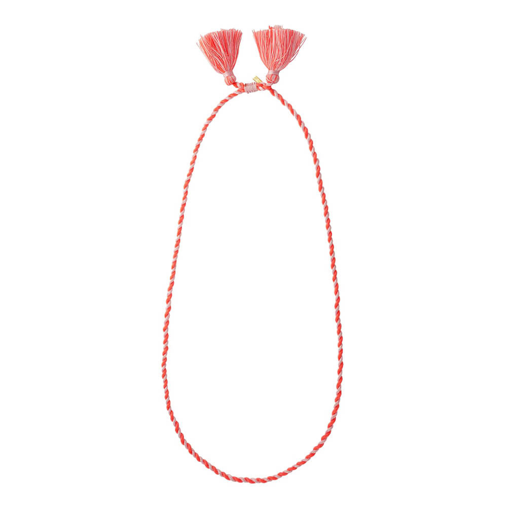 Onze RODEO DRIVE halsketting in roze en beige koord maakt deel uit van de PIMP-collectie. zodat u hem alleen kunt dragen of hem kunt aanpassen met onze bedeltjes om uw sieraad uniek te maken.