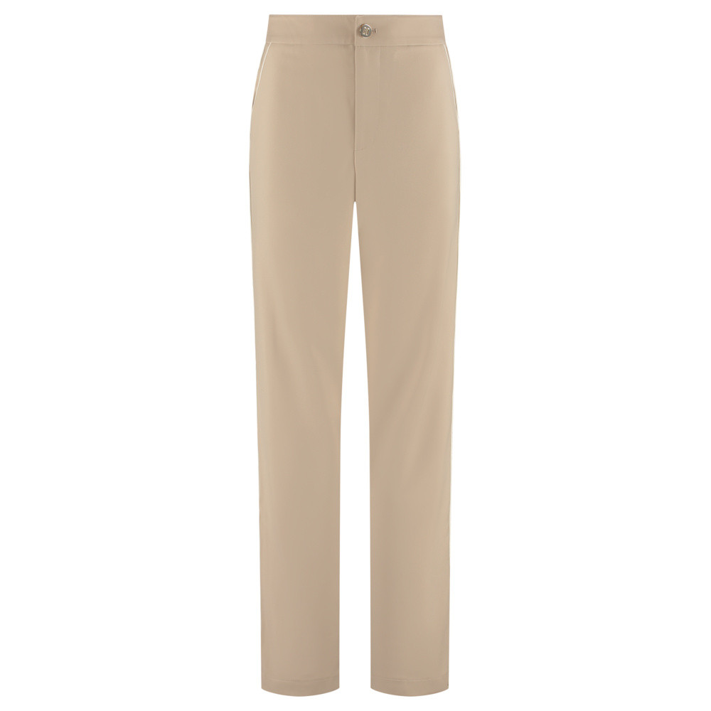 Midwaist broek met rechte pijpen en een rits- en knoopsluiting aan de voorkant. De broek bevat geen stretch.