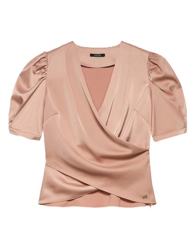 De Nikkie Kansis Blouse is een stijlvolle dames blouse die elegantie en draagcomfort moeiteloos combineert. Het model heeft een flatterende V‑hals, overslag en een zachte, vloeiende pasvorm die een vrouwelijke uitstraling geeft. De subtiele plooidetails bij de mouwen voegen een speels accent toe, waardoor de blouse geschikt is voor zowel casual als chique looks. Deze dames blouse laat zich eenvoudig combineren met een pantalon of rok voor een nette outfit, maar staat ook prachtig bij een jeans voor een relaxte, stijlvolle look. Dankzij het veelzijdige ontwerp is de Nikkie satijnen overslag top een onmisbaar kledingstuk dat je keer op keer kunt dragen en dat elke outfit direct een moderne en verzorgde uitstraling geeft.