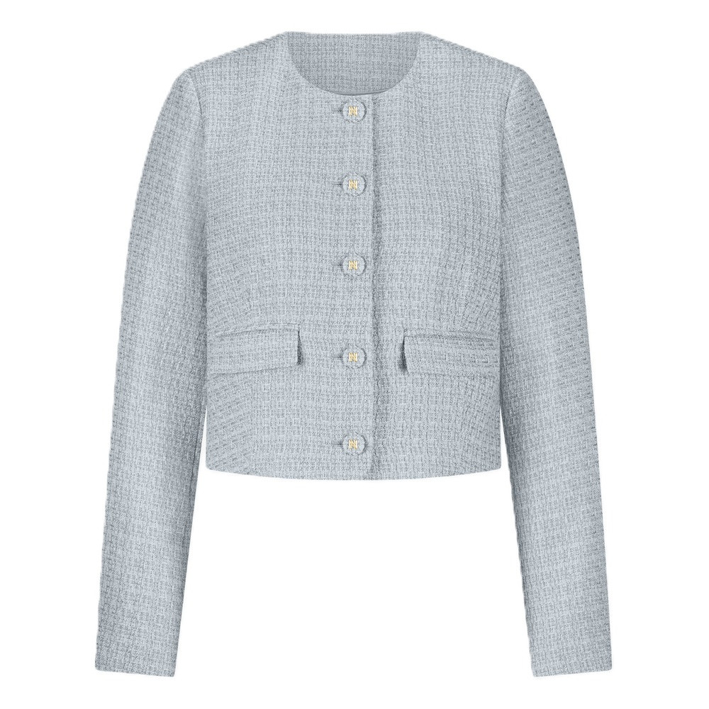 Het Kline Jacket van NIKKIE uit de exclusieve Nikkie x Anna Nooshin collectie combineert klassieke elegantie met eigentijdse details. Dit korte tweedjack heeft een zachte, ronde hals en een normale pasvorm die comfortabel draagt en makkelijk te stylen is.