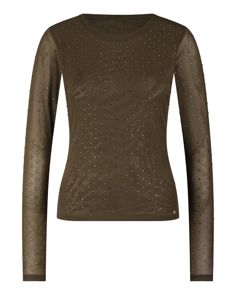 Voeg sprankeling toe aan je look met de NIKKIE Linne Gold Top. Deze elegante mesh-top combineert een gedurfde uitstraling met subtiele finesse. Dankzij de all-over studs schittert hij bij elke beweging, terwijl de semi-transparante mouwen en de nauwsluitende pasvorm zorgen voor een vrouwelijke, zelfverzekerde vibe.