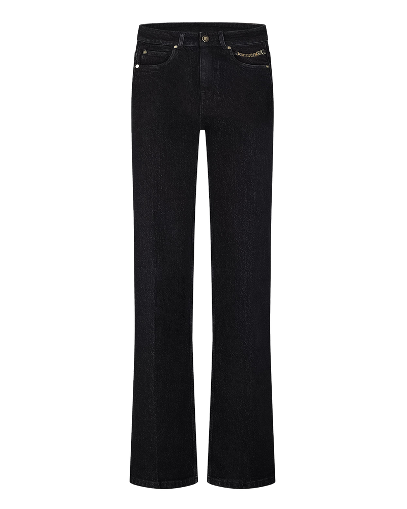 Maak kennis met de Nikkie Lynn Wide Leg Jeans, een stijlvolle jeans die meteen opvalt door zijn hoge taille en elegante silhouet. De wijd uitlopende pijpen geven je look een ontspannen maar verfijnde twist, terwijl het subtiele kettingdetail net dat beetje extra attitude toevoegt.