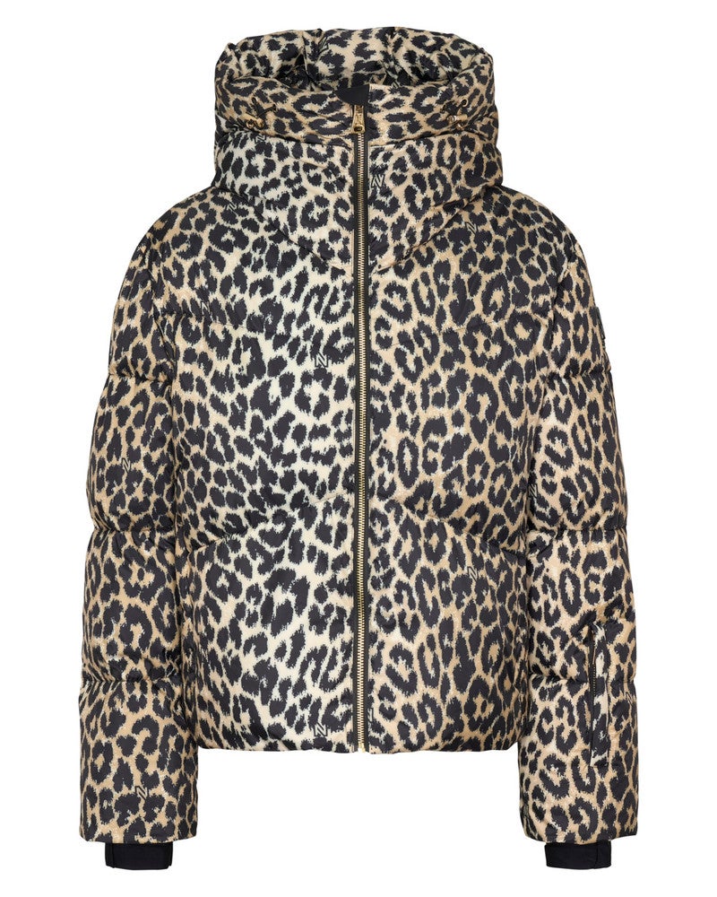 De NIKKIE Newport Leopard Jacket is een gewatteerde ski‑jas die warmte en stijl perfect combineert. De opvallende luipaardprint geeft je winterlook direct een modieuze twist, terwijl de capuchon met trekkoorden en de sneeuwvangers bij de mouwen en onderkant zorgen dat je comfortabel en beschermd blijft tijdens koude dagen. De jas voelt zacht aan, sluit mooi aan en biedt dankzij het technische materiaal een waterdichtheid van 10.000 millimeter en een ademend vermogen van 3.000 millimeter, zodat je droog en comfortabel blijft, zelfs bij sneeuw of lichte regen.