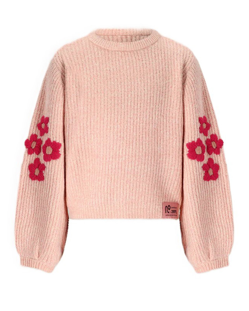 NONOKem Melange Knitted Sweater with Flower embro Roze