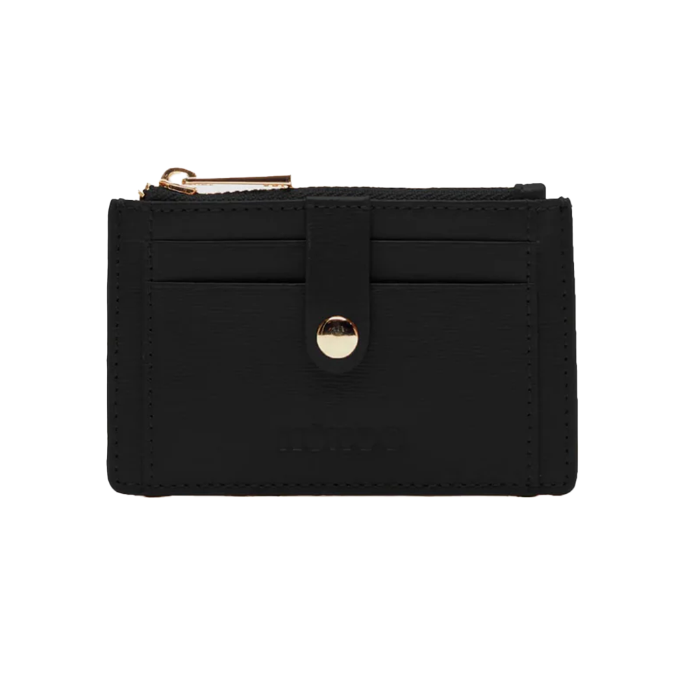 De Pixie Buckle in zwart en goud is een elegante en praktische portemonnee. Het hoofdcompartiment heeft een ritssluiting voor veilige opbergruimte, terwijl aan de zijkant kaartvakjes zitten die beveiligd worden door een verfijnd gespdetail. Het strakke ontwerp met de gouden accenten maakt deze portemonnee een luxe accessoire dat zowel stijlvol als functioneel is. H: 7 cm W: 12 cm D: 0,3 cm