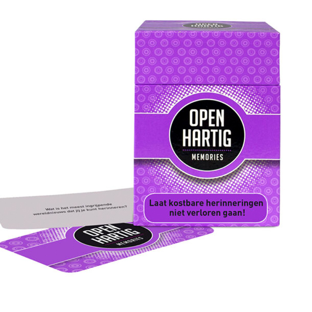 Openhartig kaartspel, dé gesprekspartner voor waardevolle momenten. De 'Memories' editie brengt de allerleukste herinneringen terug op tafel. Laat je kostbare herinneringen niet verloren gaan en gebruik dit spel als gespreksstarter om mooie memories op te halen.