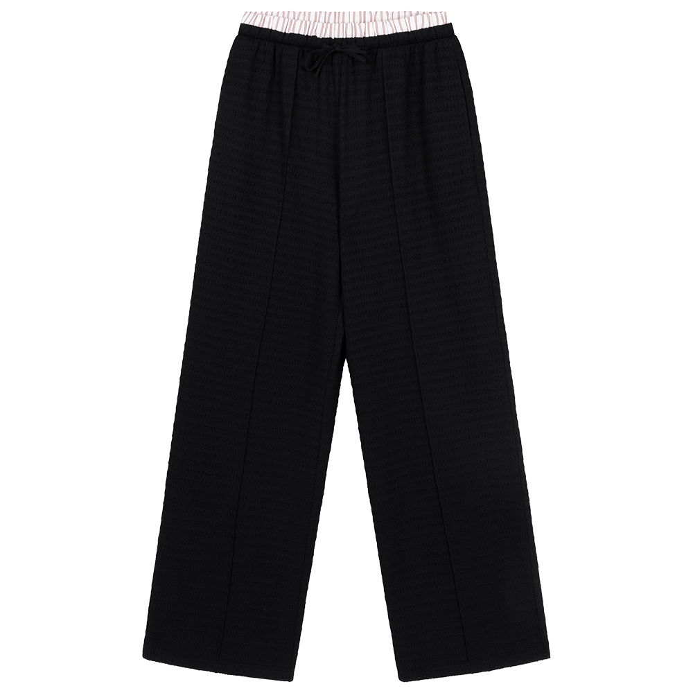 Deze wide leg high waist Mara pants van Refined Department combineren comfort met een moderne, stijlvolle uitstraling. Het rekbare materiaal met gebreide textuur zorgt voor een soepel vallende pasvorm, terwijl de elastische tailleband met contrasterende stof en trekkoord voor een perfecte fit zorgt. Het hoge model accentueert de taille en geeft het silhouet elegantie. Combineer de broek met de LYLOE blouse voor een complete, trendy co-ord look, of draag hem casual met een basic top en sneakers. Het model is 174cm en draagt een 36.
