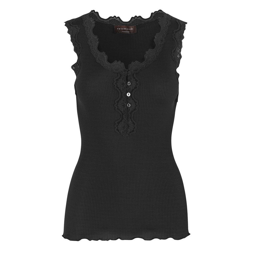 RosemundeBabette Silk Top With Button & Lace Zwart