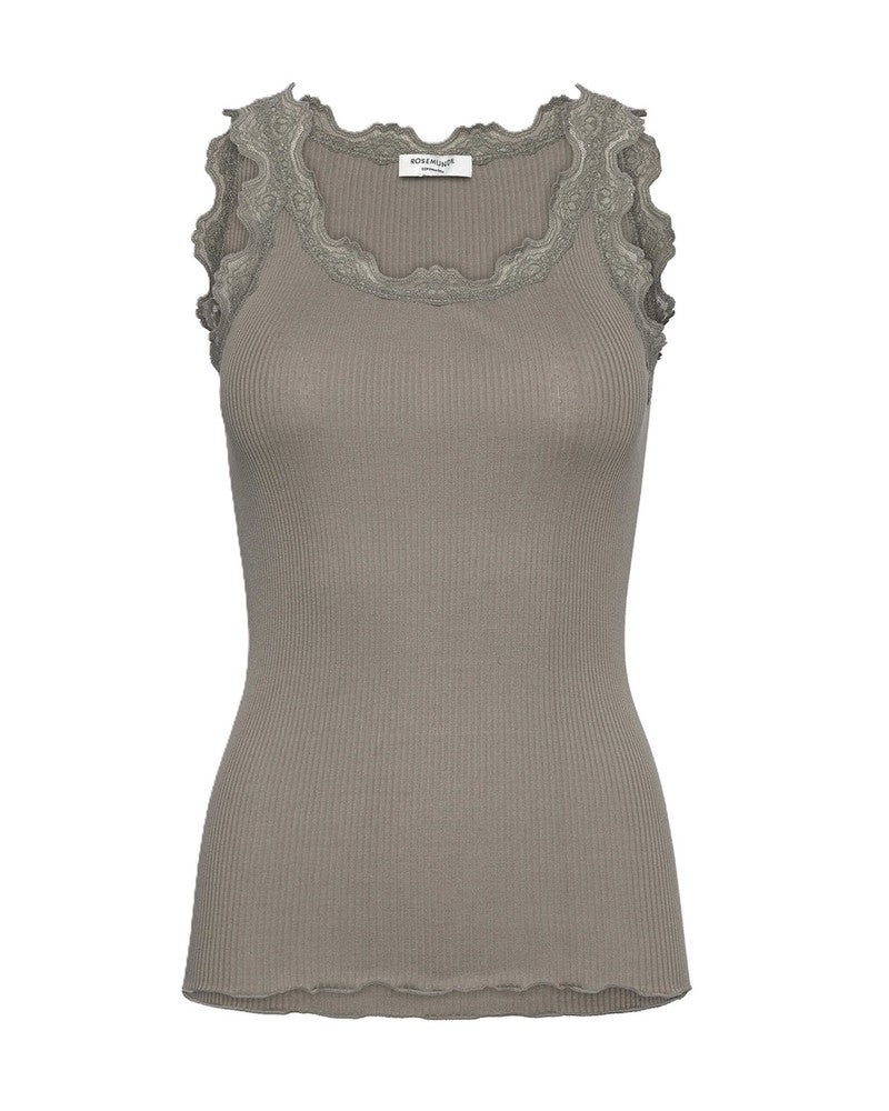RosemundeRWBabette Silk SL U-neck Long Lace Top Groen