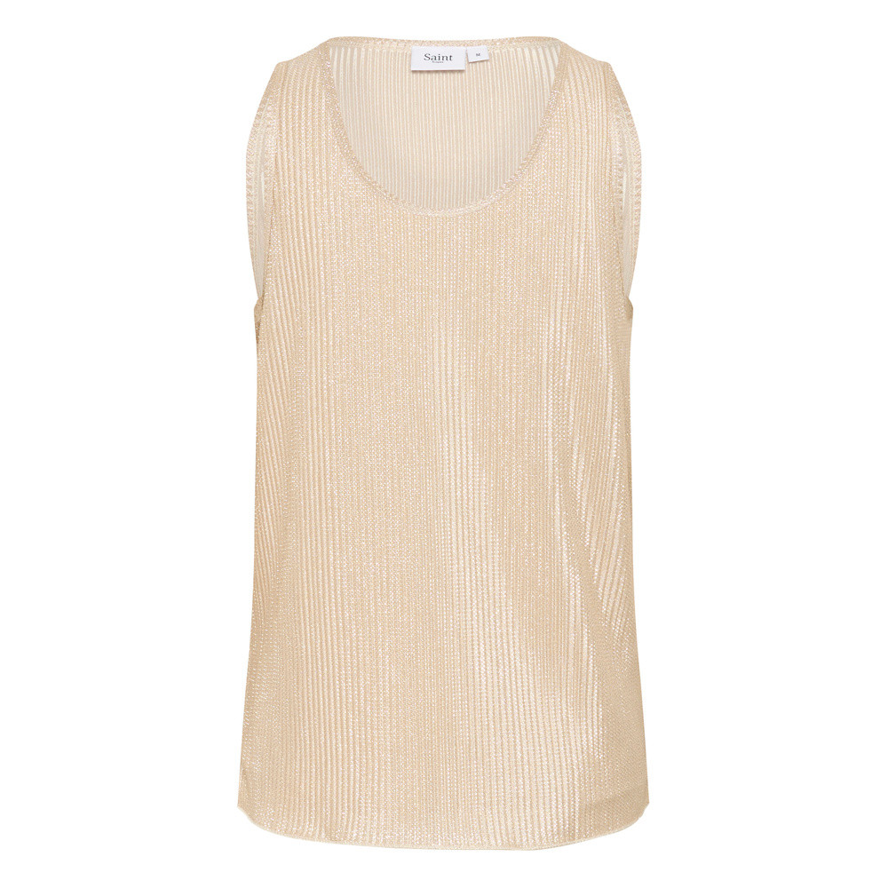 De EvySZ Top van Saint Tropez is een mouwloze top in een verfijnde Winter White tint. Met een ronde halslijn en rechte pasvorm biedt deze top zowel comfort als stijl. De subtiele metallic gestreepte textuur geeft een glanzend effect, waardoor de top een chique uitstraling heeft. Gemaakt van een lichtgewicht stof met soepele valling, is deze top ideaal voor diverse gelegenheden. Het model is 177cm en draagt een 36.