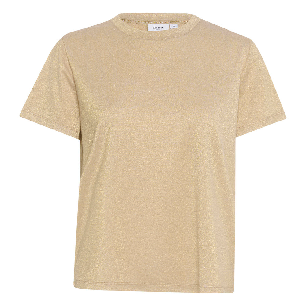 Het HagaSZ T-shirt van Saint Tropez is een veelzijdig en stijlvol kledingstuk in een elegante Plaza Taupe kleur. Dit T-shirt is vervaardigd uit een glanzende jersey-stof die een subtiele metallic glans biedt, waardoor het een verfijnde uitstraling heeft. Met een ronde halslijn en korte mouwen biedt dit T-shirt zowel comfort als stijl. De losse pasvorm zorgt voor een relaxte en moderne look, waardoor het ideaal is voor dagelijks gebruik of een casual uitje. Het model is 176cm en draagt een 38.